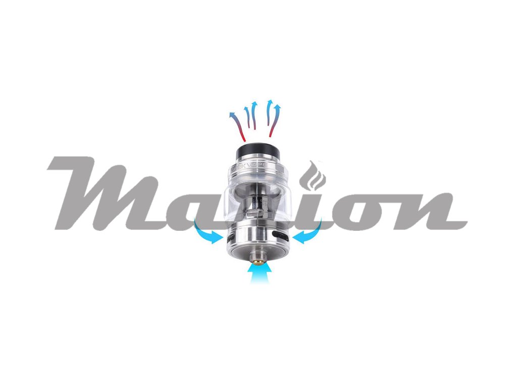 Ve spodní části clearomizéru GeekVape Obelisk C Tank se nachází speciální tříslotový systém airflow. Díky třem otvorům je zajištěn plynulejší přístup vzduchu do atomizéru a rovnoměrný ofuk žhavícího tělíska. Systém je plně regulovatelný a těšit se můžete na prokreslenou chuť každého e-liquidu. Díky systému si zároveň užijete volný potah s velkým množstvím páry.