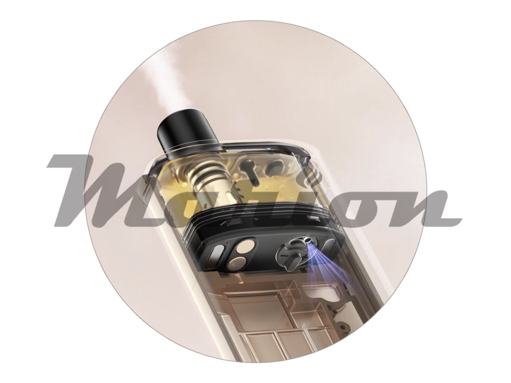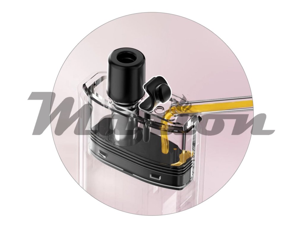 Ve vrchní části se nachází praktický výřez, který slouží pro rychlé zjištění stavu náplně uvnitř cartridge. Ušetříte si tak starost s vyjmutím cartridge z těla pokaždé, když se zrovna chcete ujistit, zda máte dostatek e-liquidu uvnitř. Nyní postačí jeden jediný pohled na průzor a ihned víte, zda je potřeba e-liquid doplnit nebo zda můžete nadále v klidu vapovat.