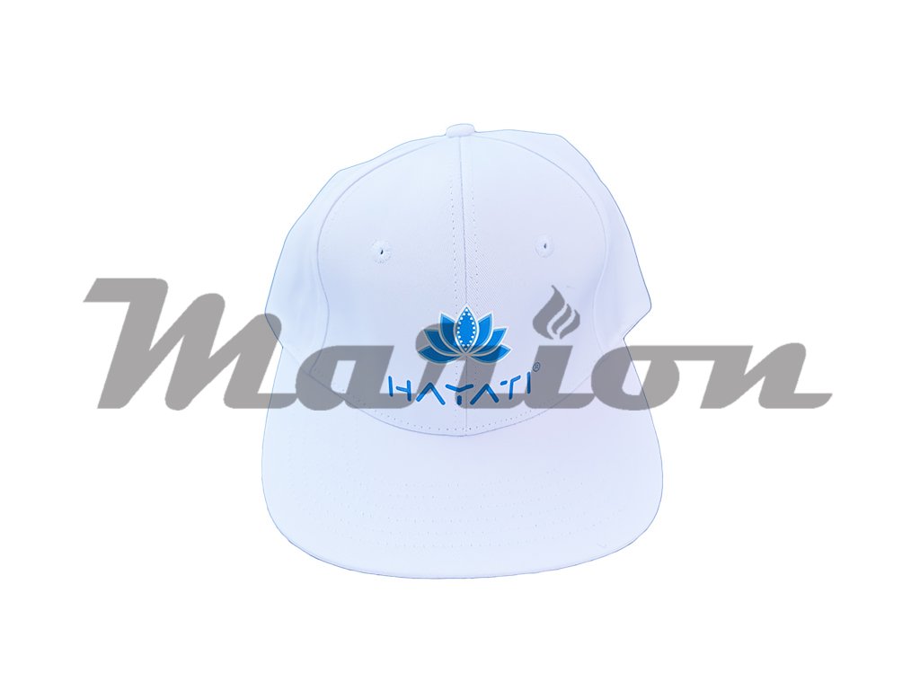 Elegantní bílá kšiltovka značky Hayati v klasickém snapback stylu s rovným kšiltem. Na přední části je aplikováno černé logo Hayati s charakteristickým lotosovým květem, který je symbolem značky.
