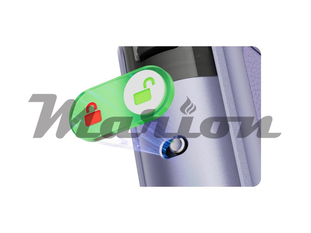 Zajistěte si spínací tlačítko prostřednictvím praktického manuálního zámku v boční části těla e-cigarety. Jedním pohybem prstu tak celou e-cigaretu odemknete nebo uzamknete a můžete si ji pohodlně vzít kamkoliv s sebou, nebo si ji jednoduše uložit do přenosného zavazadla. Praktický doplněk usnadní každodenní využití.