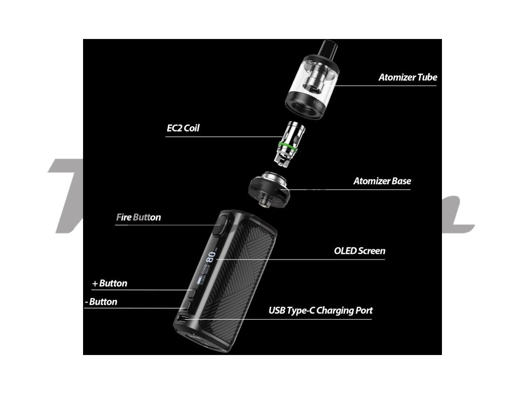 Není určeno pro náplně obsahující nikotin! Jak už jeho název napovídá, Eleaf iStick i80 je nový 80W grip, který nabízí vysoký výkon v kompaktním, ergonomickém a elegantním designu. Tělo baterie disponuje integrovaným monočlánkem o kapacitě 3000mAh, který je podporován inovativním systémem rychlého nabíjení QC3.0. iStick i80 nabízí režimy pro výkon, Bypass, TC-Ni, TC-Ti, TC-SS316 a TCR. Přehledný OLED displej nabízí detailní informace o nastavení. Výrobce k této sadě přiřadil nový clearomizer Melo C o objemu 5ml s jednoduchým systémem horního plnění - po odsunutí vrchní části plníte liquid otvorem přímo do těla clearomizeru. Melo C spolupracuje se žhavícími hlavami EC, které nabízejí širokou škálu variant odporu, včetně novinky EC2-M o odporu 0,3ohm. Celý clearomizer je plně rozebíratelný = snadná údržba. Regulace přívodu vzduchu pro nastavení optimální kouřivosti se nachází ve spodní části.