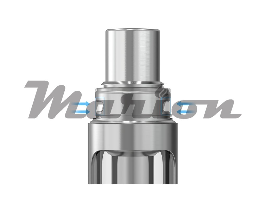 Ve vrchní části Clearomizeru Cubis D19 se nachází i vylepšený přívod vzduchu pro optimální prožitek z vapingu (Air komory). Celý Clearomizer je plně rozebíratelný a vyrobený z nerezové oceli a Pyrexu (Laboratorní sklo).