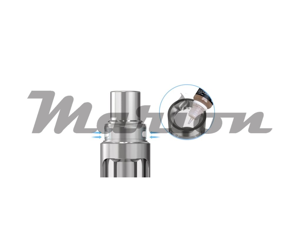 Clearomizer Joyetech Cubis D19 využívá systém horního plnění e-liquidu, kde již nemusíte odšroubovávat celou vrchní základnu Clearomizeru se žhavící hlavou, ale jen část pod náustkem a e-liquid (náplň do elektronické cigarety) plníte jedním ze dvou otvorů.