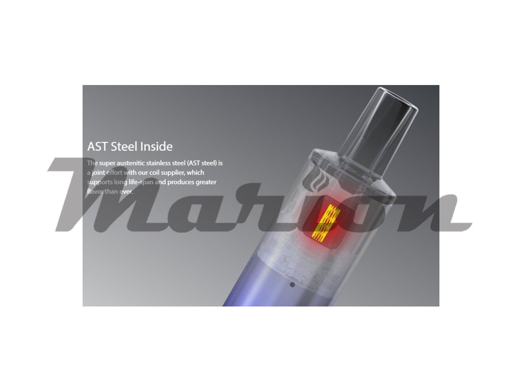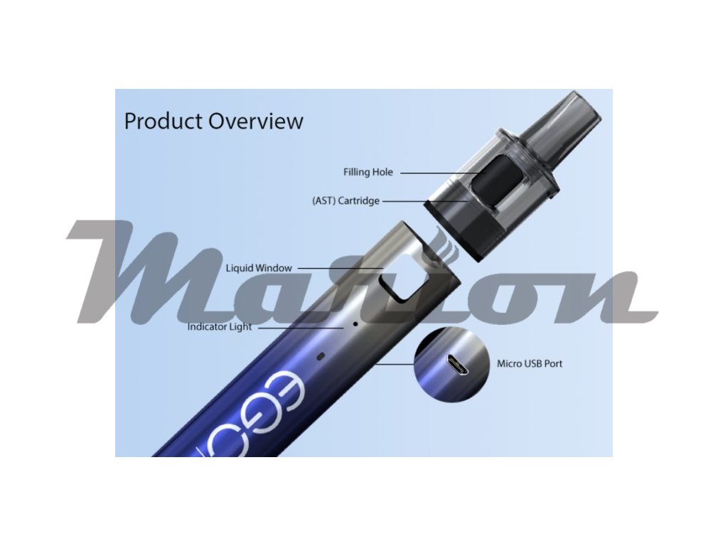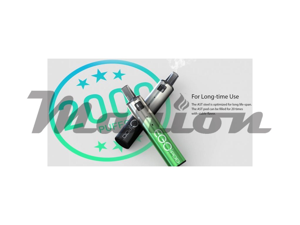 Joyetech eGo AIO AST Pod patří do tzv. skupiny kapesních elektronických cigaret, jejichž výhodou jsou kompaktní rozměry, autentické podání chuti a nízká pořizovací cena. Tělo baterie disponuje zabudovaným monočlánkem o kapacitě 1000mAh s automatickým spínačem a konstantním napětím pro stabilní výkon. Čip AVATAR IC 1.0 přináší ochranu proti zkratu, přehřátí a vybití, či 8 vteřinovou ochranu žhavení. Vyměnitelná cartridge (POD) se žhavící hlavou o odporu 1ohm pojme až 2ml liquidu. Nabíjení umožňuje micro USB vstup. Tato inovace je vhodná pro kouření ve stylu MTL, tedy klasického šlukování pusa-plíce.