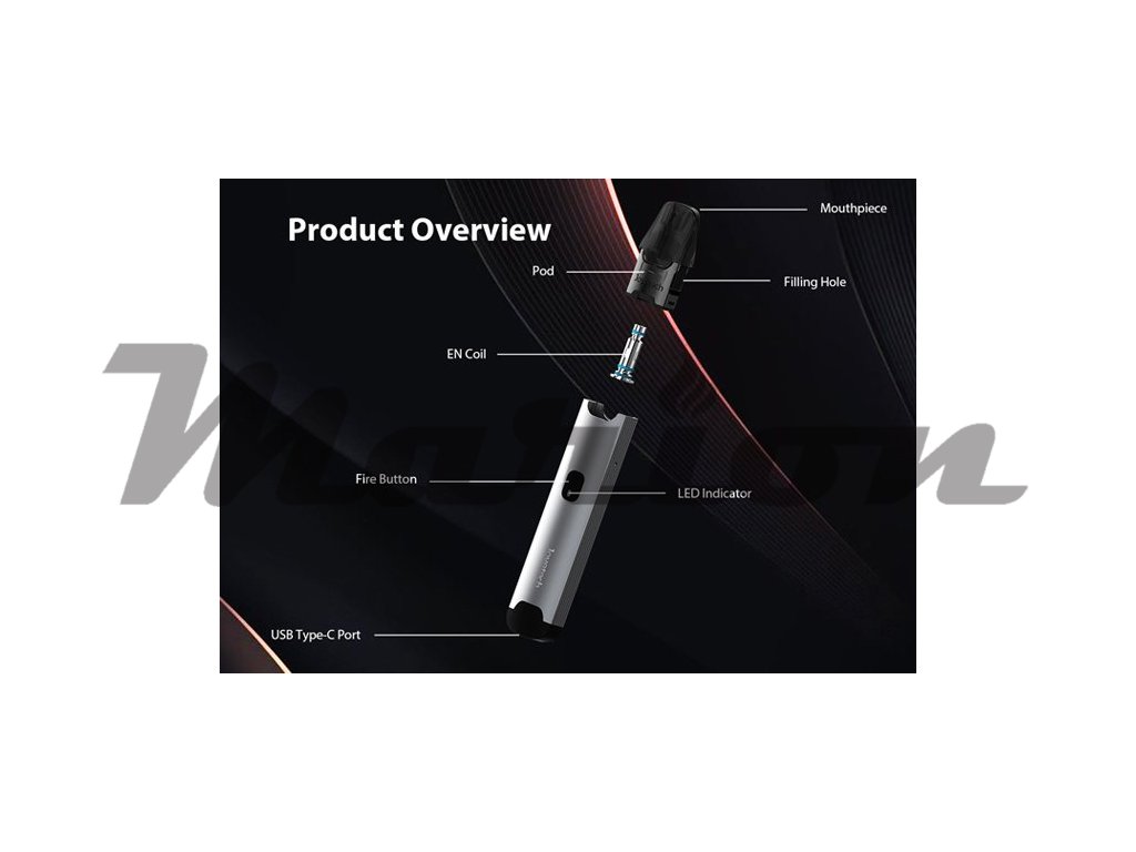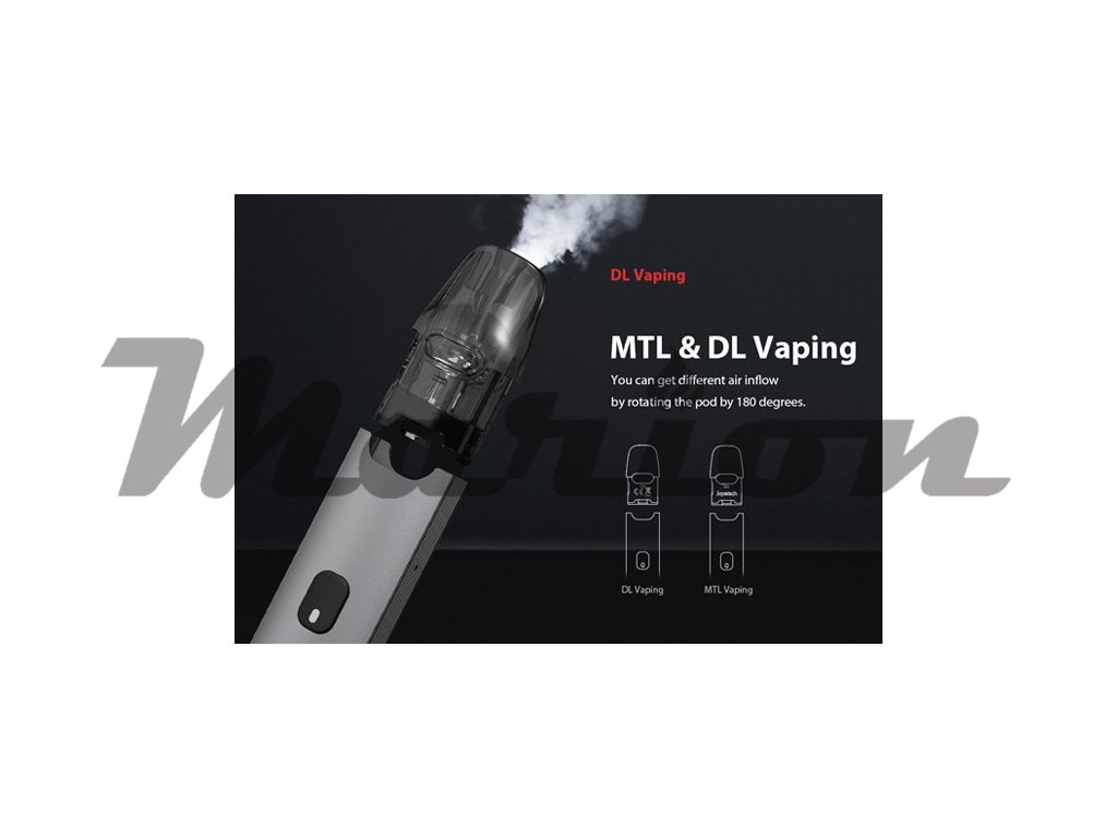 Joyetech EVIO C Pod je ultimátní elektronická cigareta s POD systémem a bezprecedentním tělem z austenitické nerezové oceli. Vestavěná baterie o kapacitě 800mAh disponuje LED indikátorem stavu nabití a USB-C portem pro rychlé nabíjení za pouhých 30min. Cartridge (POD) s pohodlným bočním plněním o objemu 2ml obsahuje vyměnitelné atomizery EN Mesh o odporu 0,8ohm (plně kompatibilní se žhavícími hlavami Uwell Caliburn G). Přívod vzduchu se nachází na boku těla baterie a dle Vašeho požadavku si můžete zvoli mezi DL a MTL stylem vapování - závisí na způsobu vložení cartridge (viz obrázek).