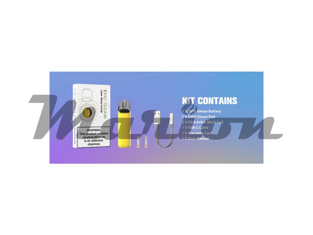Joyetech EVIO Gleam je elegantní elektronická cigareta s hladkým povrchem a křišťálově čistým vzhledem. Integrovaný monočlánek o kapacitě 900mAh disponuje LED indikátorem stavu nabití, automatickým výkonem až 20W a USB-C portem pro rychlé nabíjení. Cartridge (POD) s vyměnitelným atomizerem řady EN nabízí pohodlné vrchní plněním o objemu až 2ml. Výrobce si připravil pro tuto e-cigaretu novou Mesh spirálku o odporu 0,6ohm