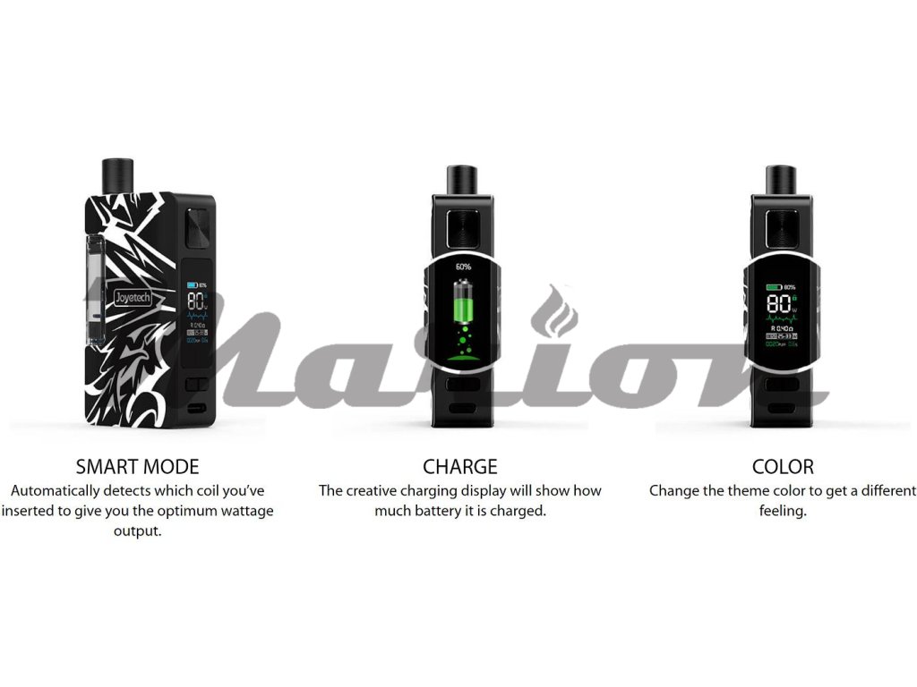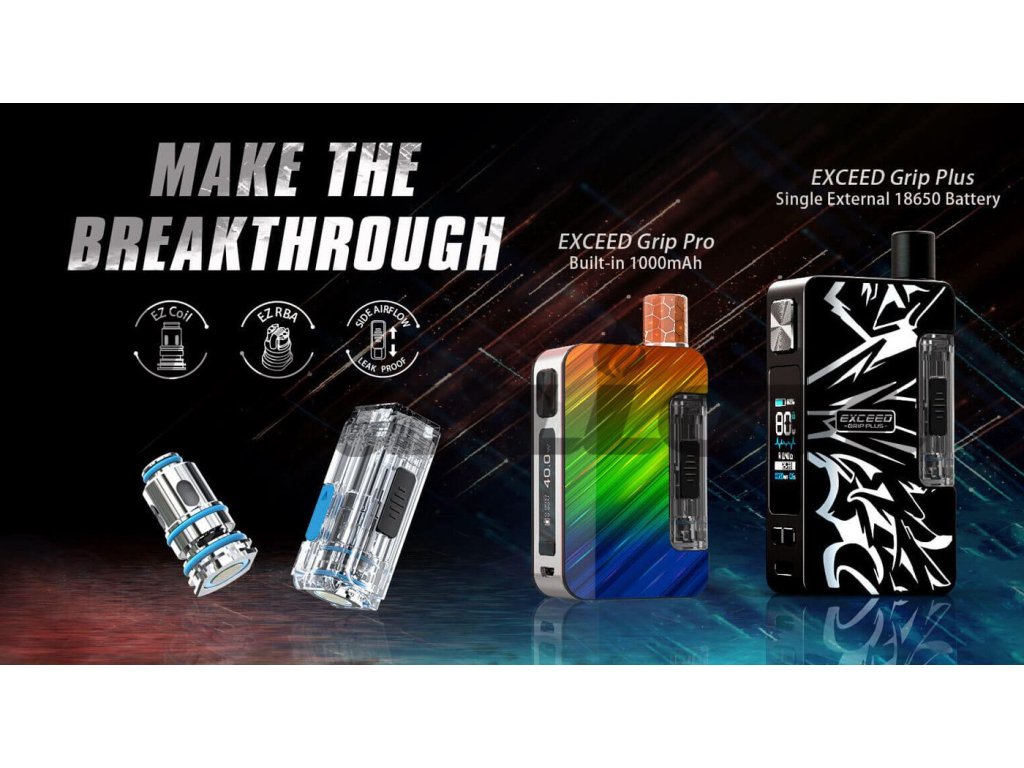 Kompaktní Pod Grip s výkonem až 80W, cartridge s objemem až 2,6ml, OELD displej, na baterii 18650, USB-C nabíjení, kompatibilní s Joyetech EZ atomizéry.