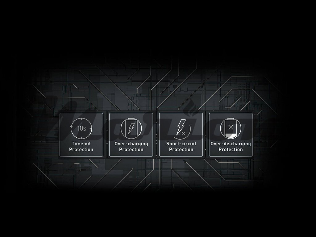 Bezpečnost především Joyetech Teros ONE disponuje celou řadou bezpečnostních prvků, mezi něž patří ochrana baterie proti přebití a podbití, pojistka proti nadměrně dlouhému potažení, zabraňující připálení vaty uvnitř žhavící hlavy. Nesmí samozřejmě chybět ani ochrana proti zkratu.