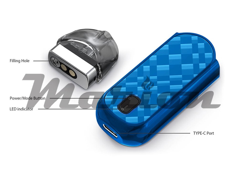 V setu naleznete pod cartridge s celkovým objemem 2ml a žhavící hlavou s mesh spirálkou, s celkovým odporem 0,5 Ω, kterou lze použít jak k přímému stylu potahování (DL), tak i k volnějšímu (MTL), jaký známe u používání klasických cigaret. K dostání by v dohledné době měla být také pod cartridge s odporem 1 Ω, která je určena díky své konstrukci a odporu výhradně k (MTL) stylu vapování. Plnění cartridge je velmi jednoduché, a je navíc opatřené dětskou pojistkou, kdy je potřeba plnící lahvičkou zatlačit na pružný uzávěr plnícího otvoru, kdy dojde k uvolnění cesty pro náplň, která pak začne proudit do těla cartridge. Samotná instalace pod cartridge do těla cigarety je velmi jednoduchá a probíhá pouhým nasunutím do těla podu. O dobré uchycení se pak postará dvojice magnetů, takže nemusíte mít strach, že by se Vám pod cartridge nějak uvolnila, nebo dokonce vypadla z těla cigarety.