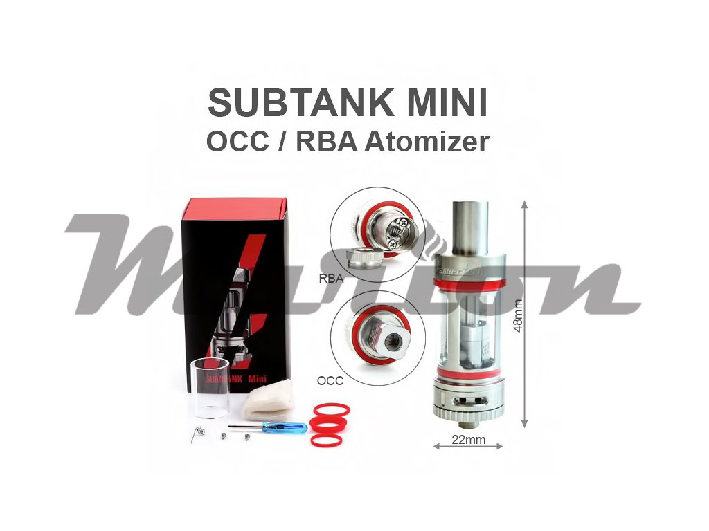 Kangertech Subtank Mini je menší verze první řady Kangertech Subtank. Tento clearomizer využívá nové žhavicí hlavy OCC a Mini RBA. OCC se vyznačuje svou odolností, čistou chutí a jedinečným designem. Tyto hlavy jsou o dvou odporech a to 0,5ohm (vhodné pro baterie s výkonem 15-30W) a 1,2ohm (vhodné pro baterie s výkonem 12-25W). Před použitím je nutné nakapat liquid i přímo na žhavicí hlavu. Zatímco Mini RBA si umožňuje vytvářet spirálky dle vlastní potřeby. Jeho další předností je vylepšený systém průchodu vzduchu pro ještě lepší kouřivost. Celý clearomizer je vyrobený z kvalitní nerez oceli a pyrexu. Objem tohoto clearomizeru je 4,5ml při hlavě OCC i při Mini RBA.