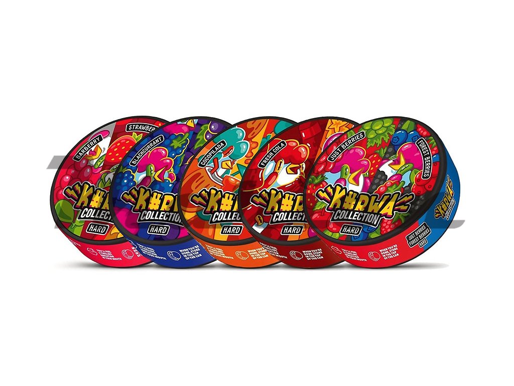Oblíbené nikotinové sáčky výrobce KURWA přichází na trh hned v několika skvěle povedených sériích a příchutích, které jsou věrny své předloze. Deklarovaný obsah nikotinu v případě série Kurwa Collection je 25 mg/g, což je 16 mg na jeden nikotinový sáček. Jedná se tedy o výrobek, který si zamilují především běžní uživatelé nikotinových sáčků, nebo středně silní kuřáci klasických cigaret. V jednom balení nikotinových sáčků Candys nalezneme 20 kusů sáčků. Sáčky dobře drží za rtem a jsou tak velice diskrétní.
