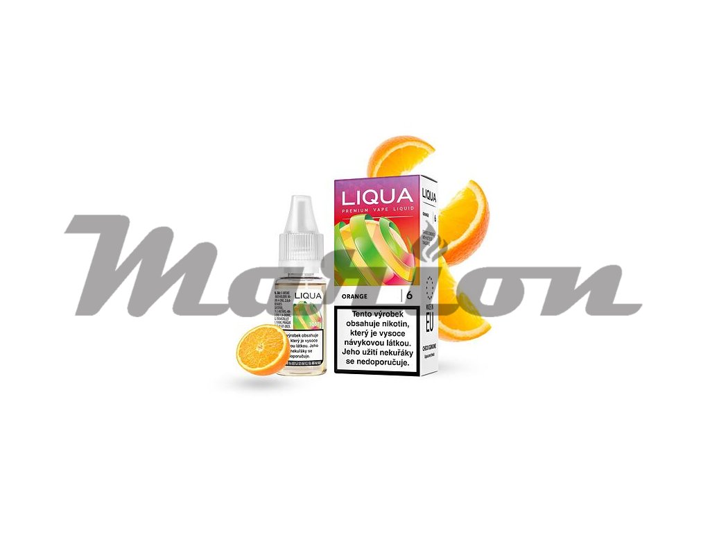 LIQUA Orange (Pomeranč s mandarinkou) 10ml intenzita nikotinu 18mg tabáková nálepka Kolek Q