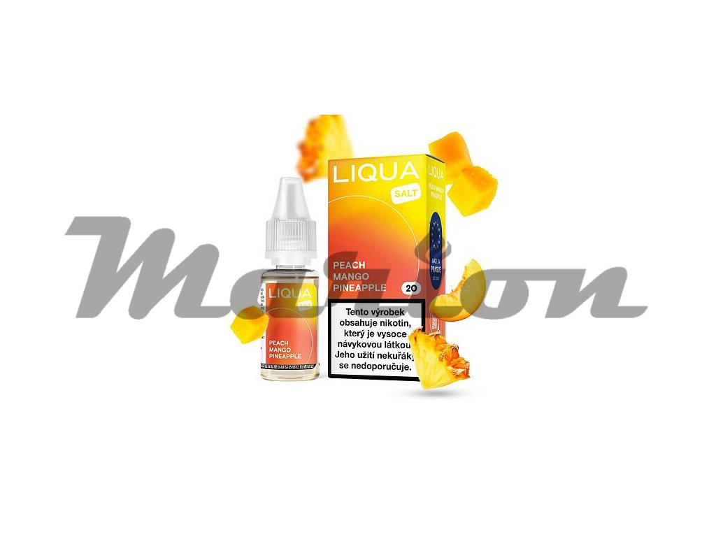 LIQUA Salt Peach Mango Pineapple (Mango, ananas a broskev) 10ml intenzita nikotinu 20mg tabáková nálepka Kolek Q