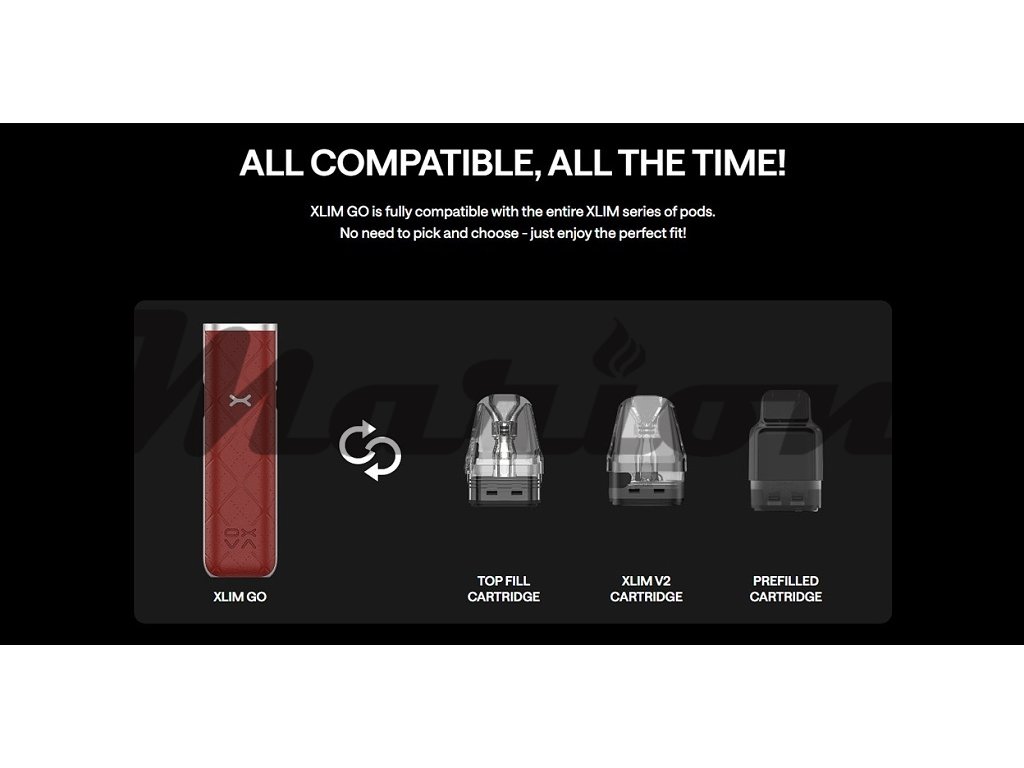 Díky jednoduchému magnetickému systému vložení Cartridge je možná její rychlá výměna. Pod systém je vyrobený z kvalitních materiálů, což zaručuje odolnost a dlouhou životnost zařízení. Oxva Xlim Go je kompatibilní téměř se všemi cartridgemi řady Xlim. Elegantní design s povrchovou úpravou z kombinace kůže a kovu dodává zařízení luxusní vzhled a plynulé nastavení průtoku vzduchu (Airflow) vám umožňuje regulovat sílu a hustotu vdechovaného kouře. Automatická aktivace žhavení potahem a snadné použití dělají z OXVA Xlim Go ideální volbu pro začátečníky i zkušené vapery. Celkově je OXVA Xlim Go ideální volbou pro uživatele, kteří hledají kompaktní a výkonné zařízení pro každodenní vaping. Díky své jednoduché obsluze a elegantnímu designu je ideální volbou pro začátečníky i pokročilé uživatele. S širokým spektrem funkcí a možností nastavení výkonu je možné tento pod systém plně přizpůsobit individuálním preferencím každého uživatele.