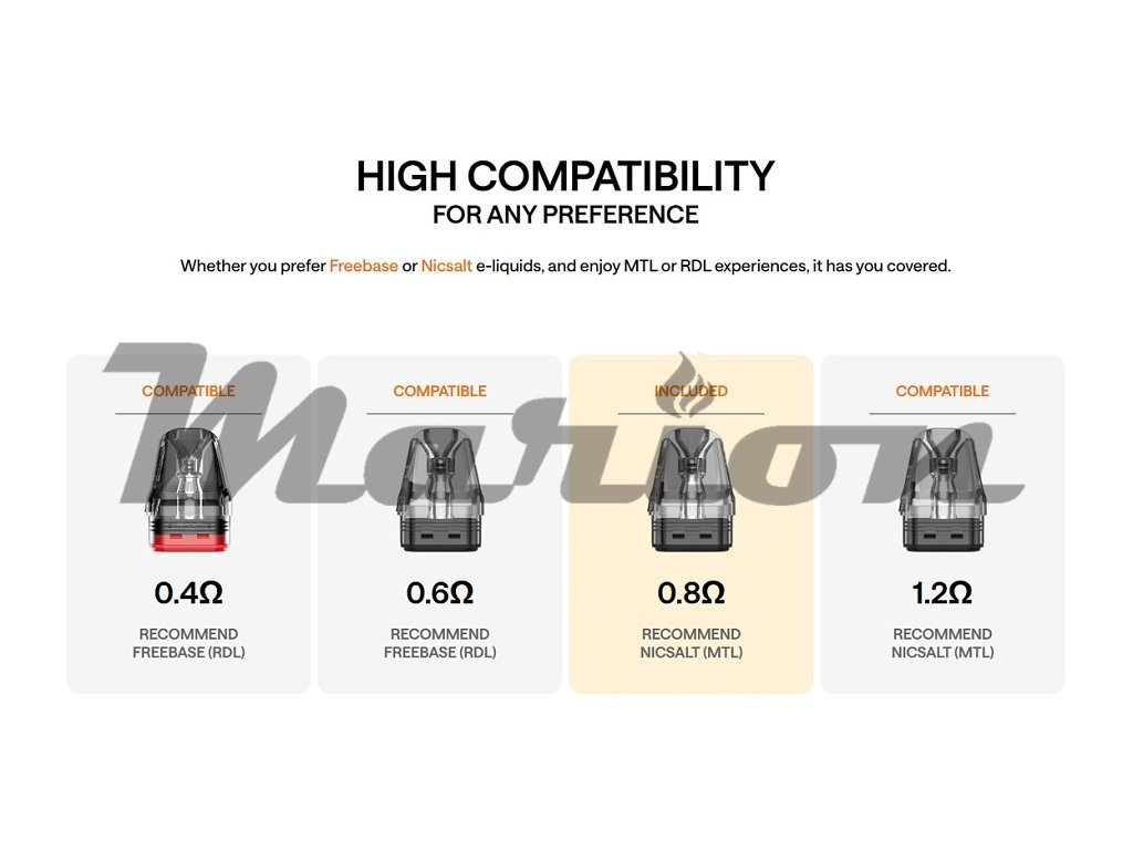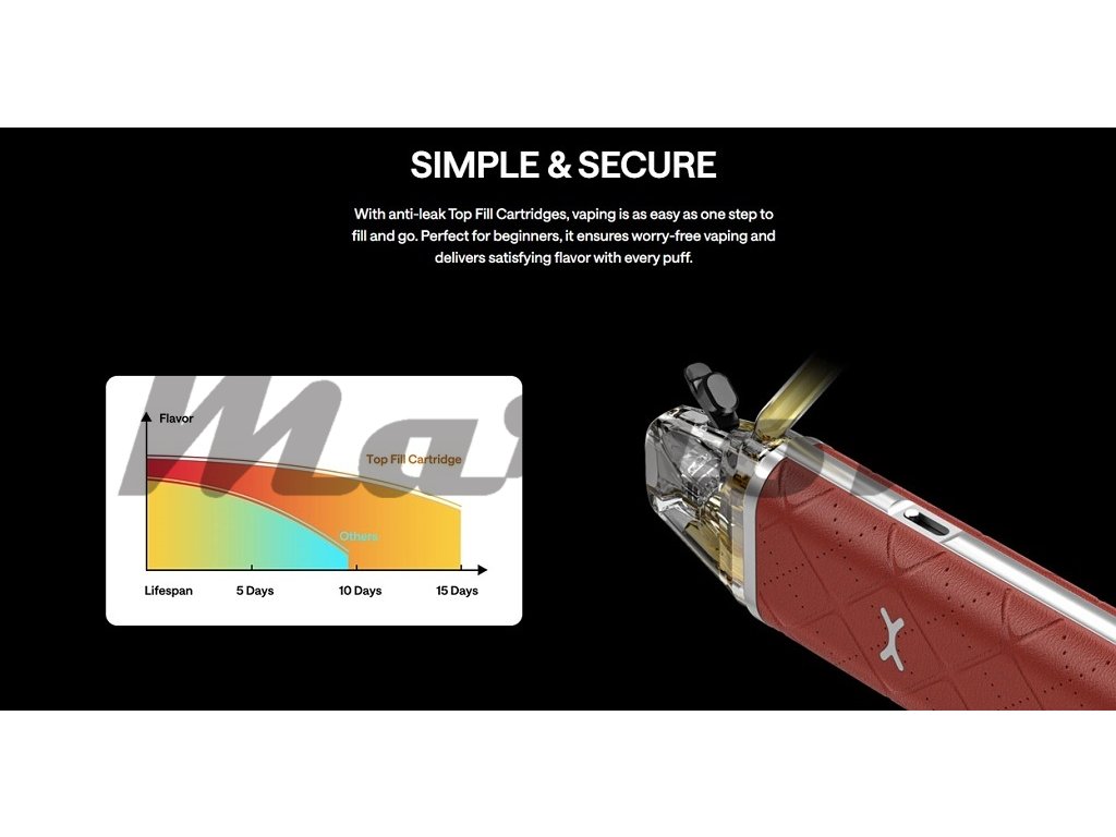 VýkonDíky použití nejmodernějších technologií je možné dosáhnout automatického maximálního výkonu v rozmezí 5 - 30 W, což zaručuje intenzivní produkci páry a bohatou chuť použitého e-liquidu. Výkon se automaticky přizpůsobuje použité Pod Cartridge a odporu žhavící hlavy, čímž je zajištěn vždy optimální výsledek. |