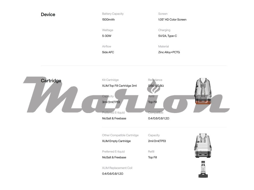 Špičkové Pod CartridgeXLIM V3 top-fill pody s kapacitou 3 ml (TPD verze 2 ml) nabízejí pohodlné plnění za pouhé 3 sekundy pomocí bezpečného bočního uzávěru bez nutnosti vyjmutí podu ze zařízení. Pody jsou vyrobeny z odolného PCTG materiálu s průhledným designem. Plná kompatibilita se všemi XLIM pody včetně V2, V3 a EZ Pod Cartridgí. |