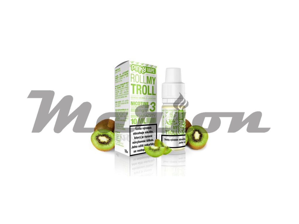 Pinky Vape Roll My Troll (Kiwi mix) 10ml intenzita nikotinu 0mg tabáková nálepka Kolek Q