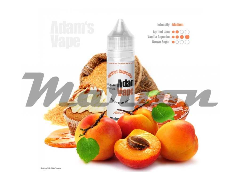 Cupcake s hnědým cukrem, meruňkovým džemem a šlehačkou... Vyladěné příchutě od českého výrobce Adam´s Vape. Příchutě jsou dodávány v 60ml plastových lahvičkách, které obsahují 12ml koncentrátu. Uživatel tak pouze přidá bázi do lahvičky, zatřese s ní a má hotový e-liquid.... Jedná se o koncentrát, který se kape do báze. Výroba probíhá za nejpřísnějších hygienických standardů ve farmaceutické laboratoři....nejedná se o hotový liquid.