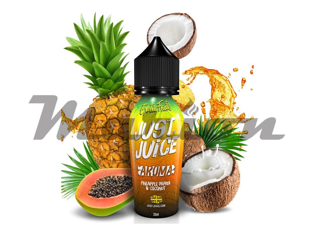 Dechberoucí blend ovocných chutí (ananasu, papáji a kokosu)... Britské příchutě Just Juice jsou velice oblíbené a vyhledávané po celé Evropě. Jsou dodávány v 60ml lahvičkách, které obsahují 20ml koncentrátu. Uživatel tak pouze přidá bázi do lahvičky, zatřese s ní a má hotový e-liquid.... Jedná se o koncentrát, který se kape do báze. ...nejedná se o hotový liquid.