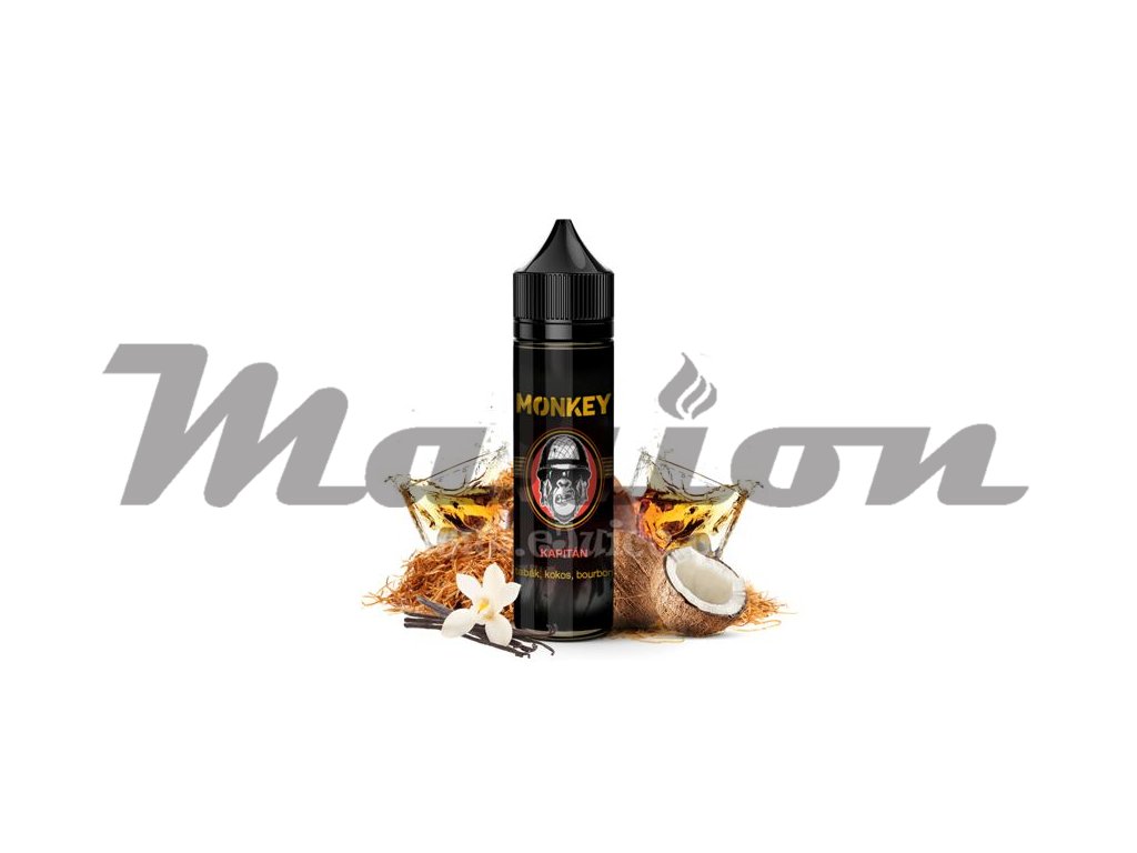 Příchuť Monkey S&V: Kapitán (Jemný tabák s kokosem a bourbonem) objem 10ml tabáková nálepka Kolek Q