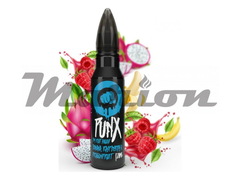 Banán, malina a dračí ovoce... Za výrobou příchutí Riot Squad PUNX stojí prémiový výrobce Riot Labs z Velké Británie. Jsou dodávány v 60ml lahvičkách, které obsahují 20ml koncentrátu. Uživatel tak pouze přidá bázi do lahvičky, zatřese s ní a má hotový e-liquid.... Jedná se o koncentrát, který se kape do báze. ...nejedná se o hotový liquid.