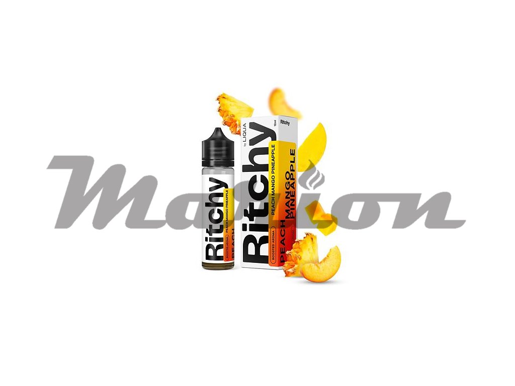 Příchuť Ritchy S&V: Peach Mango Pineapple (Broskev, mango a ananas) objem 12ml tabáková nálepka Kolek Q
