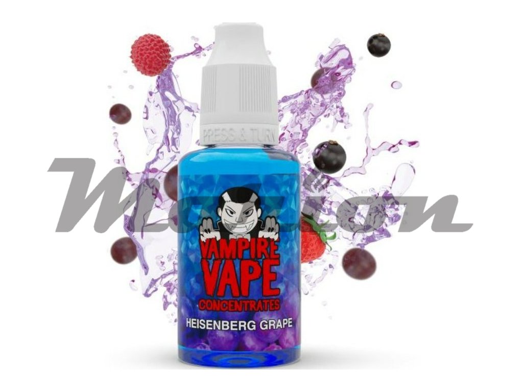 Pokud máte rádi mysteriózní mix Heisenberg, určitě vás bude bavit varianta Grape, která samotnou příchuť vyhání do vesmíru a přínáší ještě intenzivnější zážitek!... Britský výrobce Vampire Vape přináší nejoblíbenější příchutě pro výrobu vlastních liquidů. Výroba probíhá za nejpřísnějších hygienických standardů ve farmaceutické laboratoři. Jedná se o koncentrát, který se kape do báze. Příchuť může být použita pouze jako aroma do bází....nejedná se o hotový liquid.