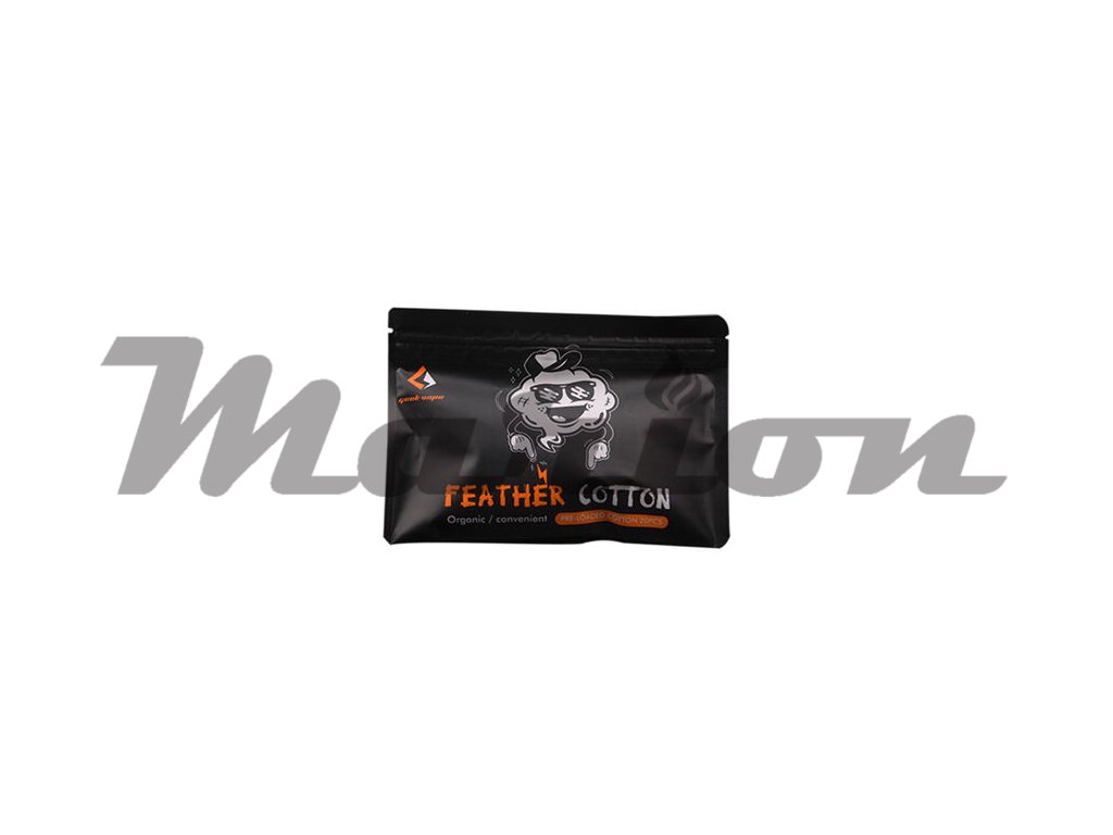 Nová přírodní vata proslulého výrobce GeekVape nabídne čistě 100% přírodní bavlnu určenou pro všechny typy DIY atomizérů. Díky výborným vlastnostem je skvělou volbou pro většinu atomizérů jak na MTL, tak na DL. Skvěle saje e-liquid a výborně prokresluje chuť. Vata je bez zápachu a každý váš e-liquid proto výjimečně vynikne a bude chutnat naprosto ohromně. Každý proužek vaty v balení je opatřen speciálními koncovkami, které můžete znát z klasických tkaniček do bot. Díky těmto koncovkám je instalace vaty mnohem jednodušší. Nemusíte tedy každý proužek vaty rolovat a složitě instalovat do spirálky, tkaničku jednoduše provléknete, oba konce poté zastřihnete a můžete začít používat. V sáčku se nachází celkem dvacet proužků vaty GeekVape Feather.