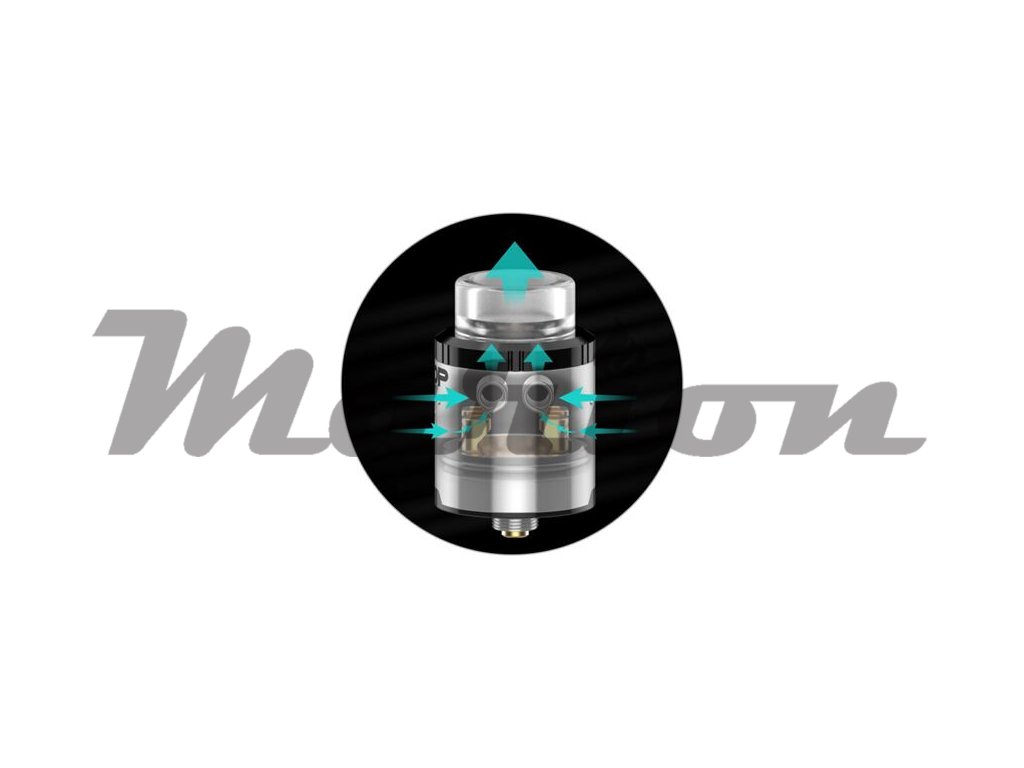 V těle atomizéru se nachází praktická základna pro instalaci dvou spirálek. Do čtyř samostatných sloupků lze umístit až dvě spirálky, při používání dvou spirálek se můžete těšit na jedinečnou chuť a okamžité odpaření e-liquidu. Zároveň produkuje atomizér abnormální množství páry, především díky systému airflow. V boční části se nachází vzduchové otvory, které jsou dostatečně široké, aby zajistily okamžitý a přímý ofuk obou spirálek.