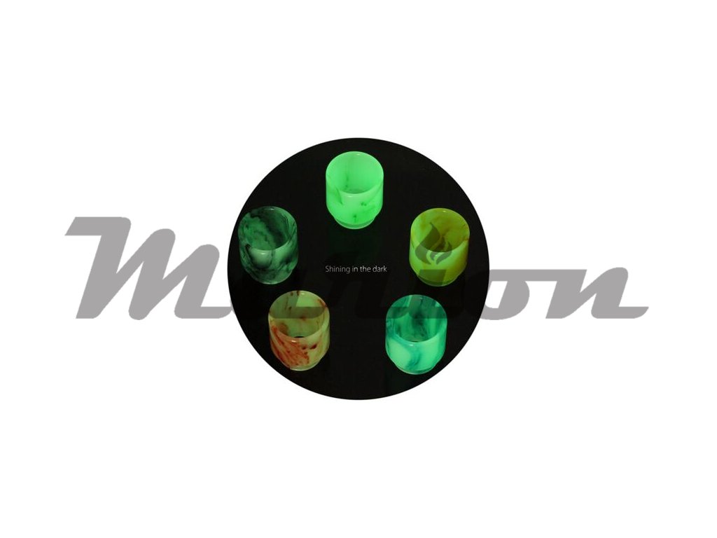 Luminiscenční náustek Joyetech je kompatibilní s clearomizéry a atomizéry s uchycením náustku 810. Součástí náustku je také těsnění, dva těsnící kroužky jsou umístěné přímo na náustku, je tedy vhodný pro většinu atomizérů s uchycením 810 na trhu. Je vyroben z resinu a speciálního luminiscenčního materiálu, který po absorpci světla září, fosforeskuje ve tmě. Jedná se tedy o velice moderní a zajímavé zpracování. S tímto originálním náustkem budete všude vynikat. Resin navíc výborně izoluje teplo od spirálek a dodává vždy jemnou a vytříbenou chuť výsledné páře.
