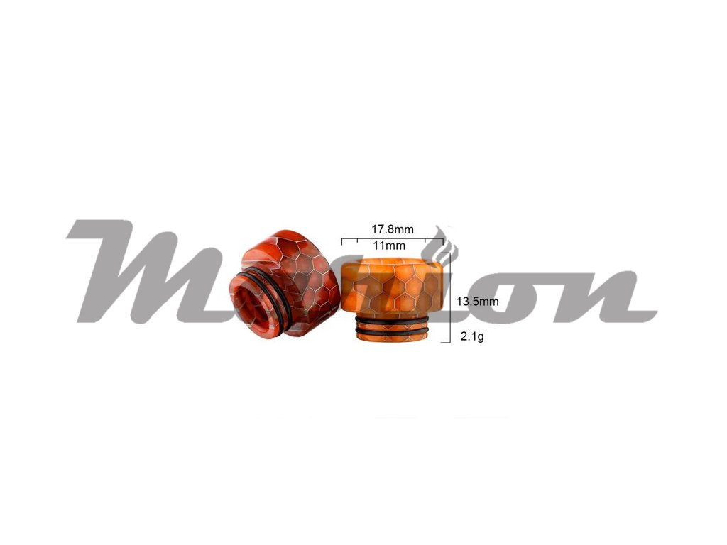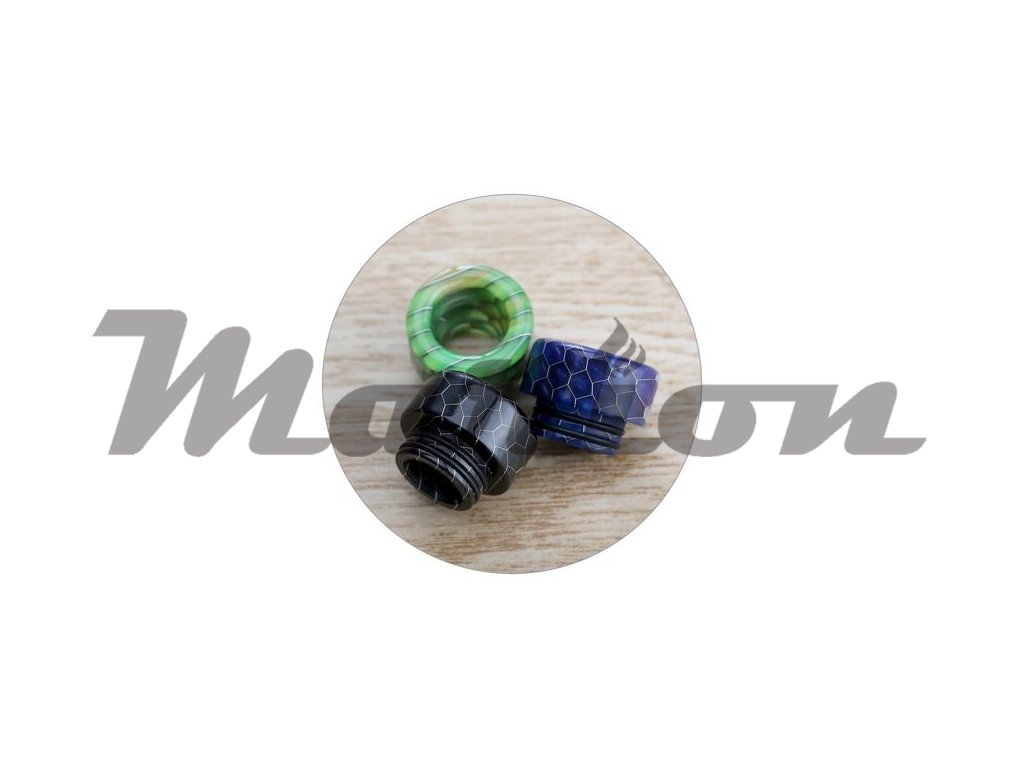 Náustek Sailing Snakeskin Pattern 810 SL213 je kompatibilní s clearomizéry a atomizéry s uchycením náustku typu 810. Je vyroben z epoxidové pryskyřice (resinu). Jedná se o stylový doplněk vašeho atomizéru. Lze ho také použít v případě poškození stávajícího náustku. Vyniká zejména stylovým vzorem hadí kůže, každý kus je navíc zcela unikátní svým barevným provedením. Resin výborně izoluje teplo od spirálek a nezkresluje chuť výsledné produkované páry.