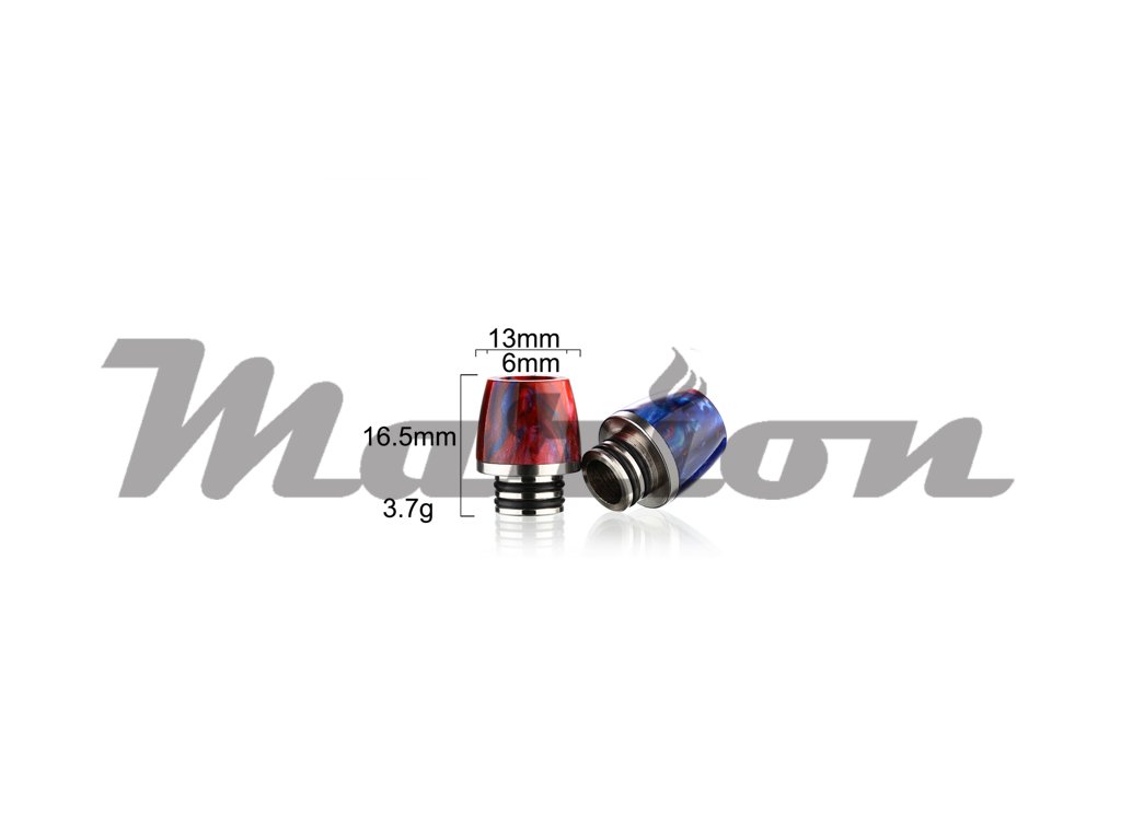 Náustek Sailing Epoxy Resin 510 SL230 je kompatibilní s clearomizéry a atomizéry s uchycením náustku typu 510. Je vyroben z epoxidové pryskyřice (resinu). Jedná se o stylový doplněk vašeho atomizéru. Lze ho také použít v případě poškození stávajícího náustku. Vyniká zejména stylovým pruhovaným zbarvením, každý kus je unikátní. Resin výborně izoluje teplo od spirálek a nezkresluje chuť výsledné produkované páry.