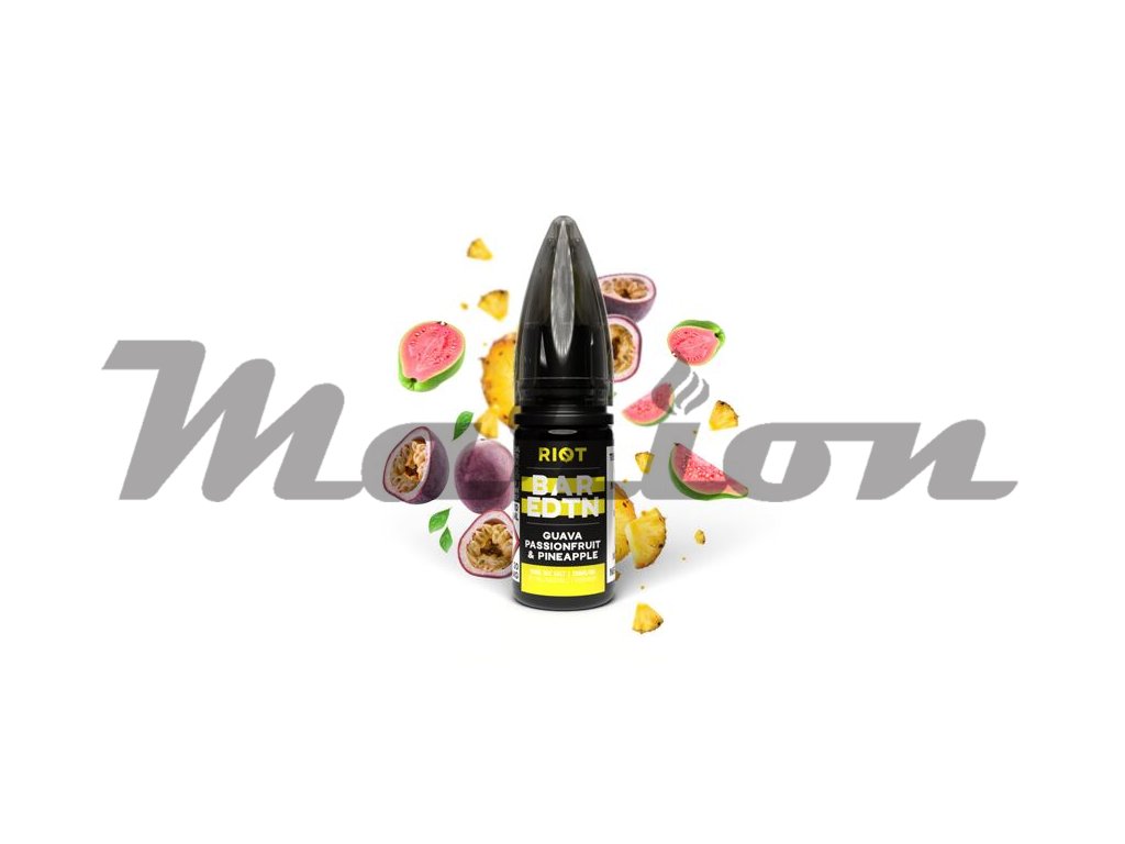 Riot BAR EDTN Salt Guava Passionfruit Pineapple (Guava, marakuja a ananas) 10ml intenzita nikotinu 10mg tabáková nálepka Kolek Q