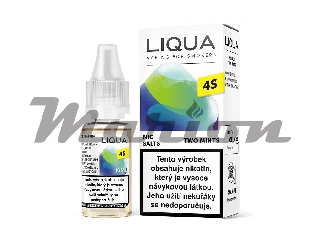Osvěžující příchuť máty a mentolu. Liquidy Liqua 4S se od běžných liquidů odlišují tím, že mají nižší PH a obsahují stále více oblíbenou a žádanou nikotinovou sůl, díky které dochází k rychlejší a kvalitnější vstřebatelnosti, bez dráždivého pocitu v krku oproti klasickým liquidům. E-liquid s nikotinovou solí (Nic.Salt) s poměrem PG 50%, VG 50%, vhodný pro MTL styl vapování a oblíbené Pod systémy. Obsah nikotinu (Nic.Salt) 18mg, objem 10ml. Výrobce Ritchy Liqua.