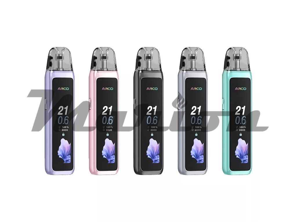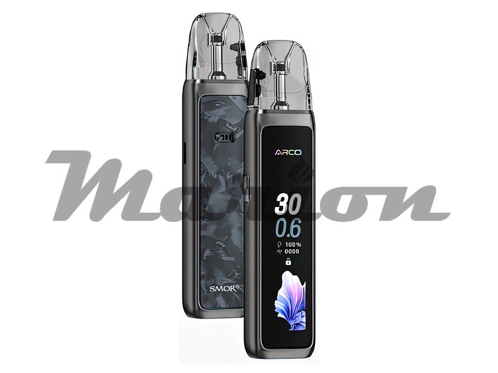 SMOK Arco Max je kompaktní a stylová elektronická cigareta třídy pod systém, která spojuje prémiové zpracování s moderními technologiemi v jednom elegantním těle. Zařízení je navrženo pro každodenní vapování a osloví jak začátečníky, tak zkušené uživatele, kteří oceňují pohodlí a spolehlivost. Tělo je zhotoveno ze zinkové slitiny s lesklým rámem a zadním panelem s IML povrchem, který dodává přístroji luxusní charakter a výraznou odolnost. Dominantou čelní strany je velký 2,25palcový barevný TFT displej, jenž přehledně zobrazuje veškeré provozní informace a nabízí výběr ze čtyř animovaných grafických témat. Vapování je aktivováno automaticky potahem z náustku, bez nutnosti mačkat jakékoliv tlačítko – provoz je tedy maximálně intuitivní a přirozený. Rozměry 112,65 × 26 × 17,2 mm zajišťují pohodlné držení v dlani a snadnou přenositelnost.