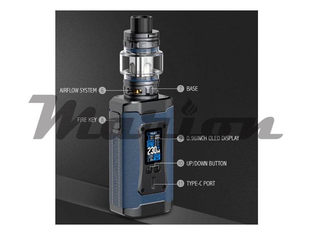 Není určeno pro náplně obsahující nikotin! Druhá generace řady gripů Smoktech Morph přináší výkon až 230W, režim nastavení teploty spirál a díky čipu IQ-S rychlé rozžhavení spirály za neuvěřitelných 0,001 vteřiny. Na přední straně gripu je umístěn 0,96 palcový dotykový displej se snadným ovládáním. Morph 2 spolupracuje s monočlánky typu 18650. Mezi jeho další přednosti patří ochrana proti zkratu a přehřátí, historie vapingu, či 8-mi vteřinová ochrana žhavení. Výrobce tento grip osadil clearomizerem TFV18, který zaručuje kvalitní podání chuti, a to díky novým žhavícím hlavám TFV18 Meshed o odporu 0,33ohm a TFV18 Dual Meshed o odporu 0,15ohm. Využívá systém horního plnění - po odsunutí vrchní části plníte liquid otvorem přímo do těla clearomizeru o objemu 7,5ml. Celý clearomizer je plně rozebíratelný = snadná údržba. Regulace přívodu vzduchu pro nastavení optimální kouřivosti se nachází ve spodní části.