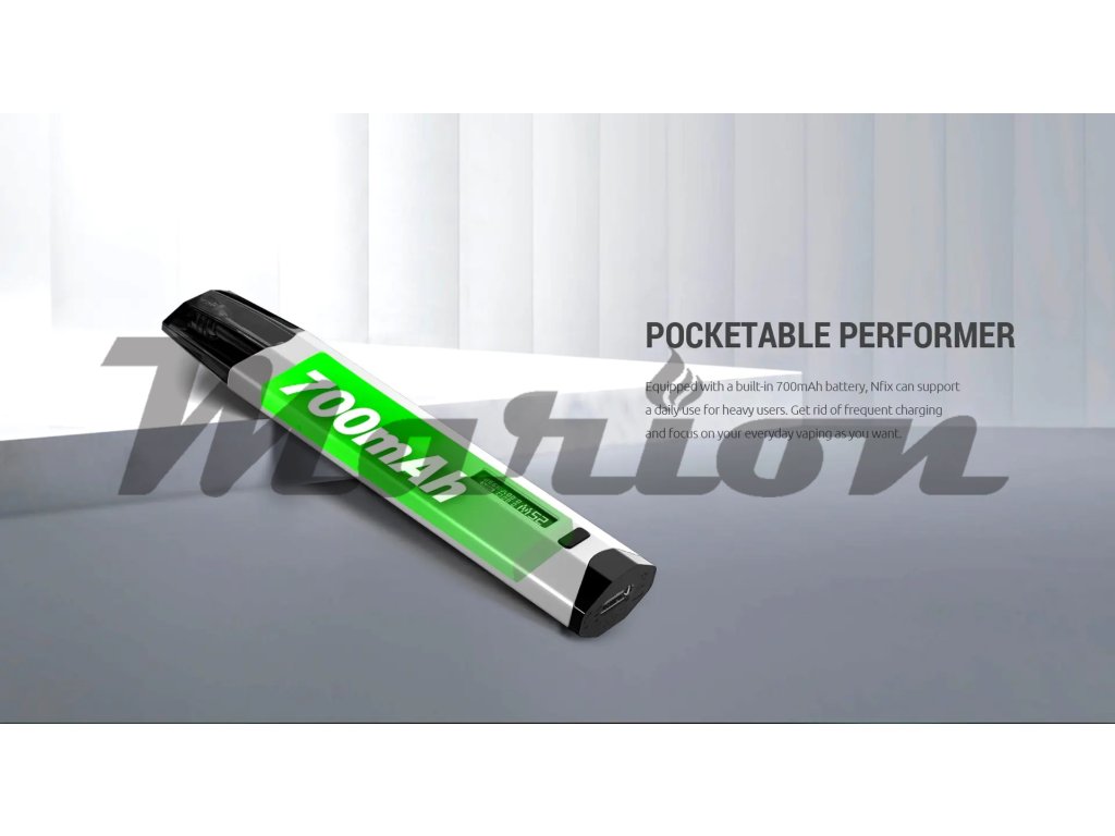 Pod elektronická cigareta Nfix je rovněž vybavena celou řadou bezpečnostních prvků a chytrých funkcí, jakými jsou například ochranu proti zkratu, automatická deaktivace žhavení při nechtěném dlouhém stisku 8 sec., inteligentní rozpoznání použitého odporu atomizéru Cartridge aj.
