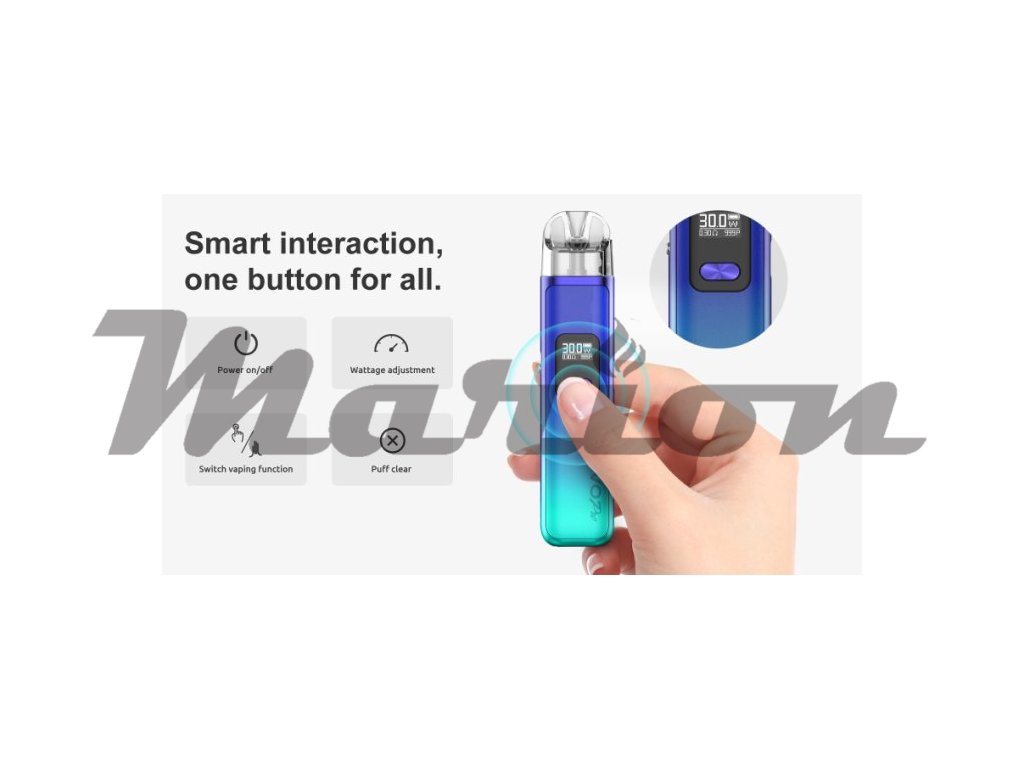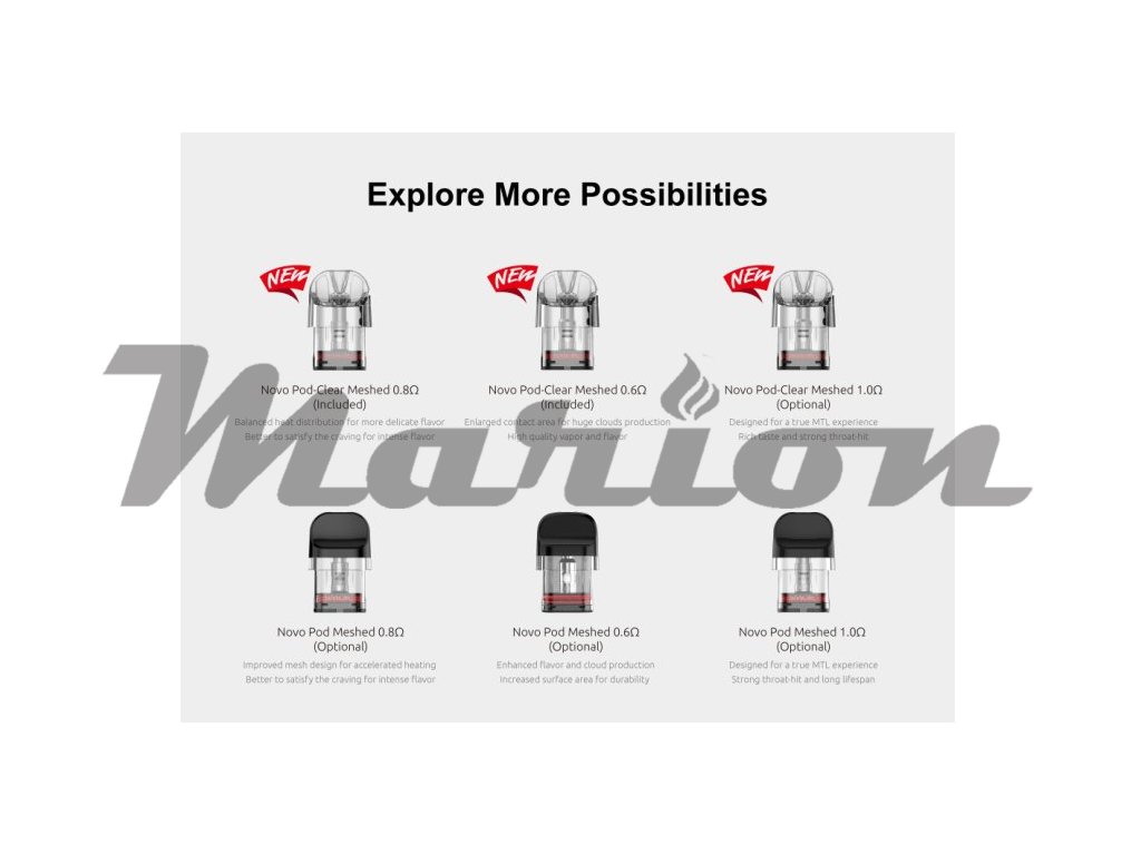 Smoktech NOVO Pro je vysoce výkonná řada elektronických cigaret s poutavým vzhledem a profesionálními funkcemi. Baterie s integrovaným monočlánkem o kapacitě 1300mAh nabízí dva aktivační režimy pro flexibilnější způsob vapování. Přehledný 0,42 palcový OLED displej zobrazuje veškeré potřebné informace o nastavení včetně výstupního výkonu, který dosahuje až 30W. Cartridge Novo Clear s vrchním plněním o objemu 3ml se představují ve verzi Mesh o odporu 0,6ohm a 0,8ohm. Tyto cartridge jsou plně kompatibilní s cartridgemi Novo 2. Postranní airflow je regulován pomocí speciální páčky, která vám umožní si vzduch nastavit přesně podle Vaší chuti.