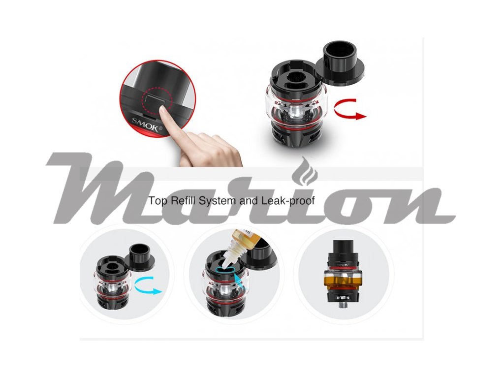 Není určeno pro náplně obsahujicí nikotin! Druhá verze oblíbeného clearomizeru TFV8 Baby, který díky žhavicím hlavám Baby V2 posunuje tvorbou dýmu a autentickou chuť liquidu o patro výš. Tyto žhavicí hlavy se od ostatních modelů liší tím, že každá komora obsahuje organickou bavlnu překrytou Mesh spirálkou ,,síťovou mřížkou´´. Využívá systém horního plnění - po odsunutí vrchní části, plníte liquid otvorem přímo do těla clearomizeru o objemu 5ml. Celý clearomizer je plně rozebíratelný = snadná údržba. Regulace přívodu vzduchu pro nastavení optimální kouřivosti se nachází ve spodní části.