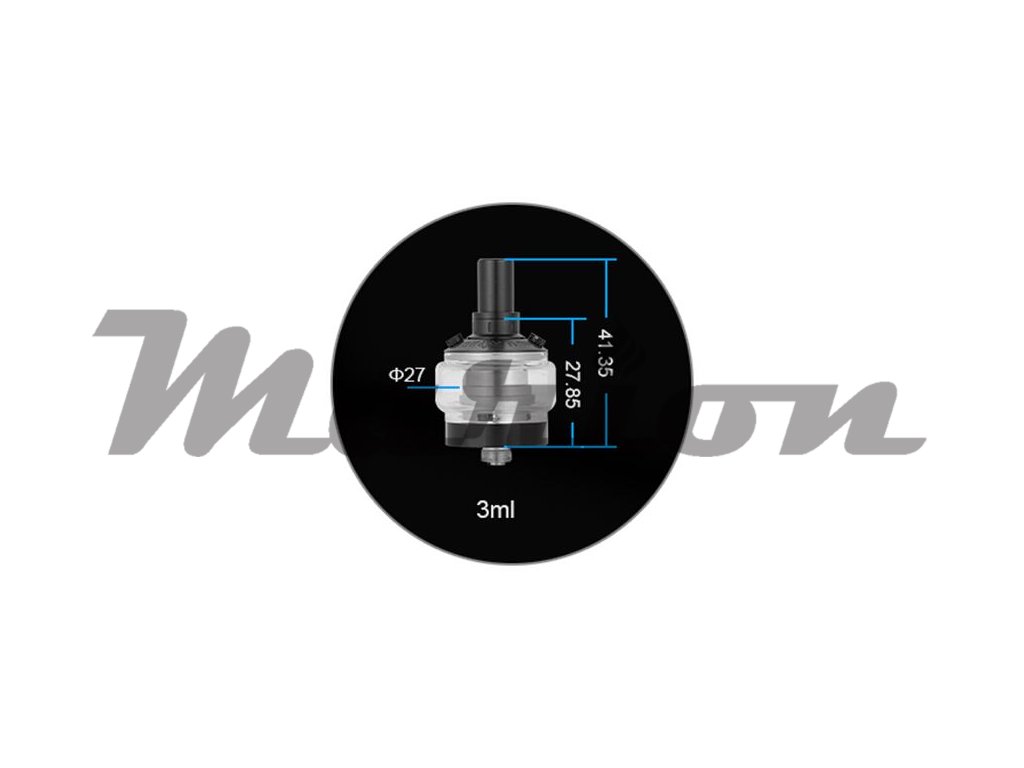 Základní objem tanku činí 2 ml. Tuto kapacitu si budete moci navýšit díky většímu pyrexovému tělu až na 3 ml. S touto kapacitou si clearomizér poradí s intenzivním provozem bez potřeby dalšího plnění. Jestliže však na plnění dojde, jednoduše odšroubujete vrchní náustek a doplníte potřebné množství e-liquidu zpět do clearomizéru.