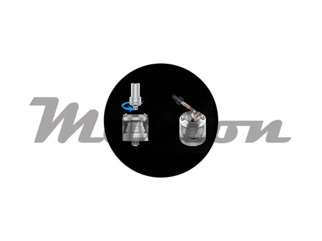 S elegantním a jednoduchým clearomizérem pro MTL šlukování přichází výrobce Steam Crave. Jedná se o clearomizér Mini Robot RTA, který se zaměřuje na příznivce vlastního motání spirálek a milovníky optimálně utaženého MTL potahu. Kompaktní clearomizér s délkou 41,35 mm a průměrem 23 mm nabídne také několik zajímavých prvků, díky kterým si ho snadno oblíbí drtivá většina vaperů. Základní objem clearomizéru činí 2 ml. Tuto kapacitu si můžete velice snadno navýšit osazením většího pyrexového skla s objemem až 3 ml. S touto kapacitou si atomizér poradí s mnohahodinovým intenzivním provozem bez nutnosti dalšího plnění. V případě doplňování je potom opatřen vrchním systémem plnění. Jednoduše odšroubujete náustek a pro plnění budete moci využít jeden ze čtyř plnících otvorů.