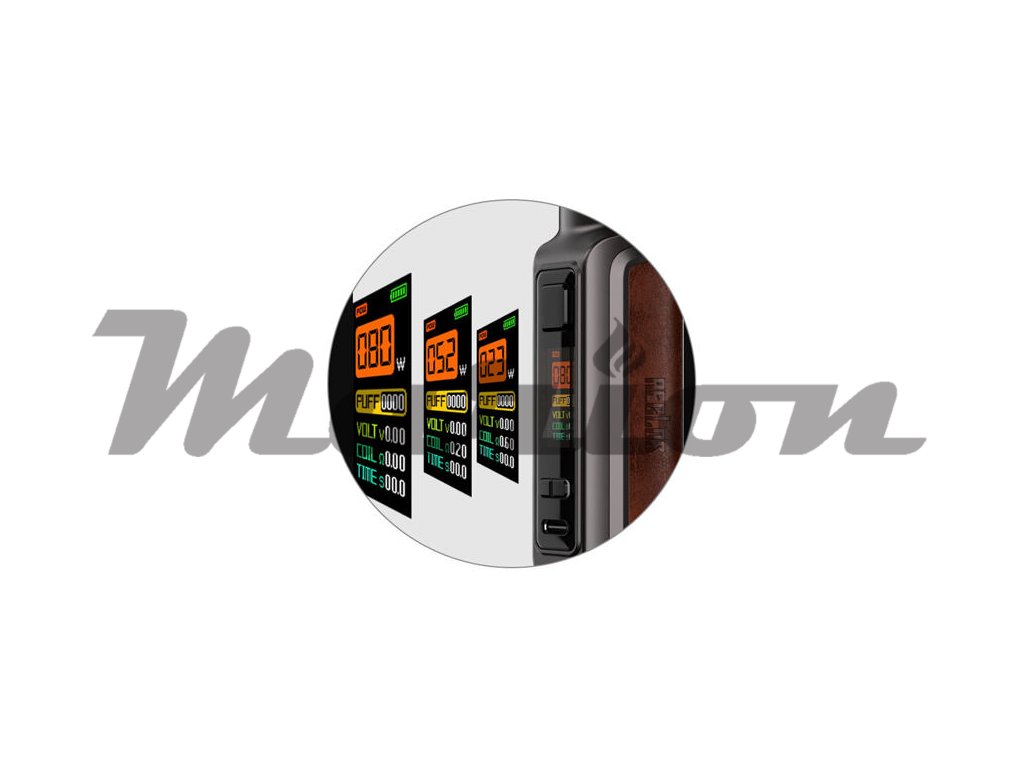Ovládací panel v přední části slouží k nastavení všech potřebných parametrů. Panel tvoří velký a celobarevný displej, velké spínací tlačítko a dvě menší regulační tlačítka. Výkon lze regulovat v rozpětí 5 - 80 W. Na displeji se rovněž zobrazují údaje o stavu baterie, nastaveném odporu, napětí baterie, nebo o počtu potahů a délce posledního potahu. Ovládání je nesmírně intuitivní a velice rychle si ho osvojíte.