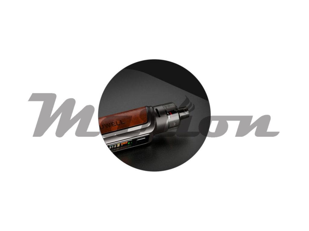 Odklopením zadního krytu objevíte slot pro vložení externí baterie. Zařízení pracuje s jednou baterií typu 18650. Díky pohonu na externí baterii je zajištěn stabilní chod zařízení, rychlý náběh žhavení a možnost využití vysokého výstupního výkonu, jež dosahuje až 80 W. Baterii si navíc kdykoliv pohodlně dobijete přímo v e-cigaretě díky portu USB-C v přední části. Lze ji dobíjet proudem až 2 A.