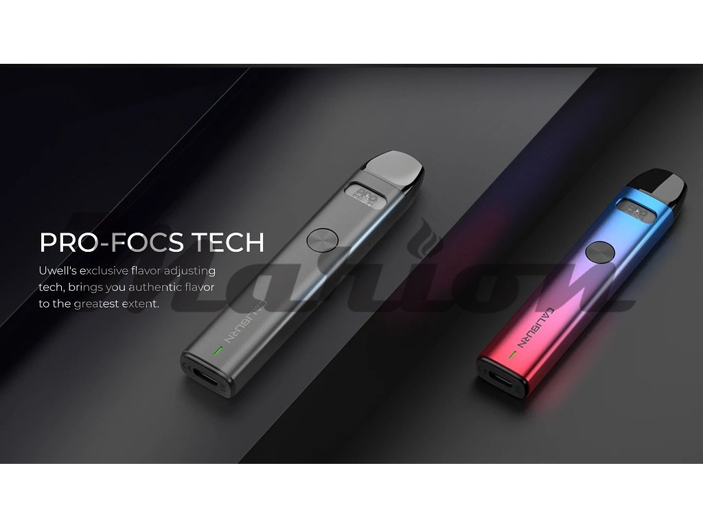 Pod elektronická cigareta vhodná pro MTL styl vapování s celkovým výkonem 15W, cartridge s objemem 2ml a Mesh žhavící hlavou s technologii kvality chuti Pro-FOCS s celkovým odporem 0,9ohm, vestavná baterie s kapacitou 520mAh, USB-C nabíjení, tělo z hliníkové slitiny, rozměry 110 x 21,3 x 11,7 mm. Možnost automatické i manuální aktivace potahu. Opakovaně plnitelná Pod Cartridge Caliburn A2.