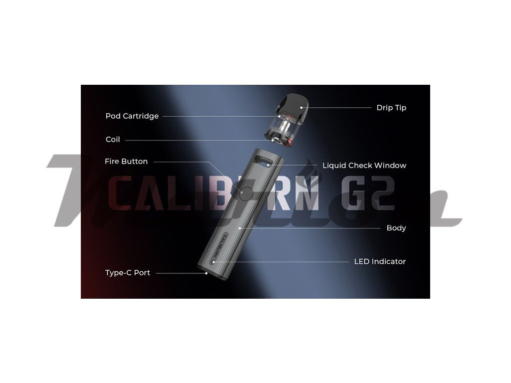 Uwell představuje elektronickou cigaretu Caliburn G2, která je odborníky na vaping považována za nejpropracovanější model této veleúspěšné řady. Tělo baterie je vybaveno monočlánkem o kapacitě 750mAh, LED indikátorem stavu nabití, automatickým spínačem a moderním USB-C portem pro rychlé nabití. Cartridge G2 o objemu 2ml disponuje inovativní regulací přívodu vzduchu pomocí regulačního kolečka - nejlepší nastavení chuti liquidu. Žhavicí hlavy jsou kompatibilní s řadou Caliburn G (0,8ohm a 1ohm) a novinkou o odporu 1,2ohm
