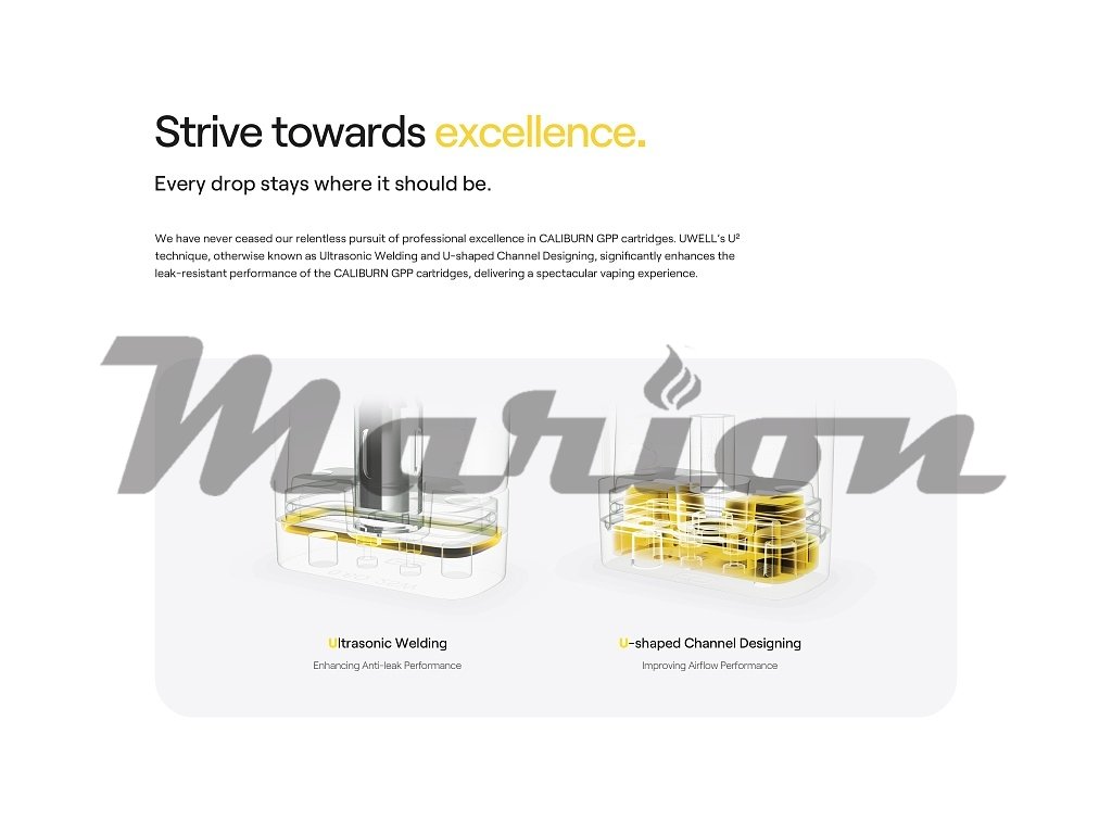 Pokročilá cartridgeCartridge Uwell Caliburn GPP s objemem 3ml využívá nejnovější technologii PRO-FOCS 4.0 pro maximální věrnost chuti. Horní plnicí otvor s praktickou silikonovou záslepkou umožňuje snadné doplňování e-liquidu bez odpojování od baterie. Kvalitní materiály PCTG zajišťují čistotu chuti. |