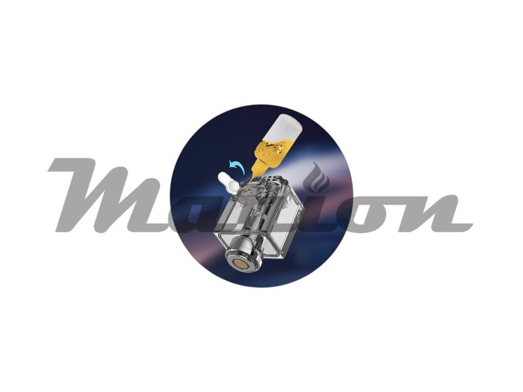 Součástí balení je praktická cartridge na vyměnitelné hlavy s objemem 5 ml. Tato cartridge pracuje se žhavícími hlavami ze série Vandy Vape VVC. V této sérii najdete tělíska jak pro DL, tak také pro MTL vaping. V základním balení na vás potom čekají tělíska VVC-30 s odporem 0,3 ohm pro DL a VVC-60 s odporem 0,6 ohm pro vzdušnější MTL vaping. Samostatně si můžete pořídit také tělíska pro utažené MTL. Cartridge nabídne spodní regulaci airflow a praktické boční plnění se silikonovou záslepkou.