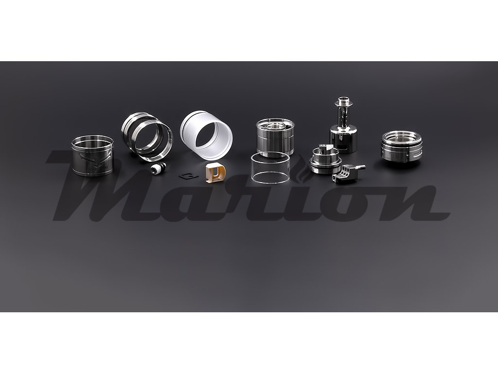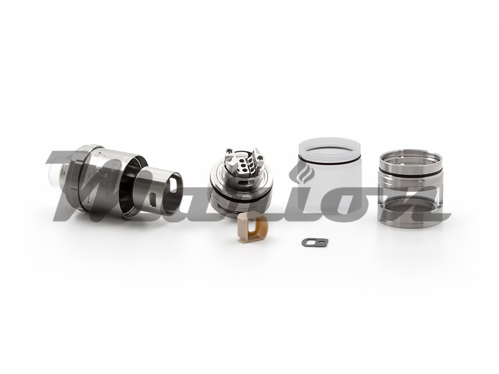 Přestavitelný RTA atomizér s průměrem 25mm, objem 7,5 - 9ml, AFC regulační kroužek, Nerezová ocel, pyrexové sklo, závit 510. Horní plnění.