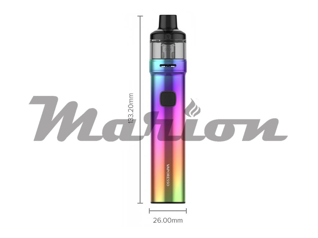Elektronická cigareta Vaporesso GTX GO 80 disponuje vestavěnou baterií o kapacitě 3000mAh, která nabízí automatický výkon až 80W s rychlým USB-C 2A nabíjením. Cartridge GTX Pod 26 o objemu 5ml je díky magnetickému propojení spojeno s vrchní částí baterie a tím se zabraňuje protékání liquidu. Zařízení spolupracuje s osvědčenými žhavícími hlavami GTX. Regulace přívodu vzduchu pro nastavení optimální kouřivosti se nachází ve vrchní části baterie.