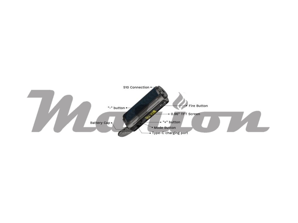Tělo modu je poháněno oblíbeným a kvalitním čipem AXON, který se postará o perfektní výsledky při vapování. Díky čipu se můžete těšit hned na několik výstupních režimů. Nesmí chybět inteligentní režim Smart VM, který doporučí výkon dle připojeného tělíska. K dispozici je také režim F(t) Mode, který se postará o co nejlepší chuťové podání, režim Pulse pro dodání konstantního výkonu během potahu, nebo DIY režimy, jako jsou VV a Bypass. Čip rovněž umožňuje dobíjení baterie přímo v modu díky portu USB-C proudem až 2A. Jedná se o vynikající grip vhodný jak pro začátečníky, tak také pro pokročilé uživatele. Nesmí chybět závit 510 ve vrchní části, díky čemuž je mod kompatibilní s celou sérií clearomizérů na trhu.